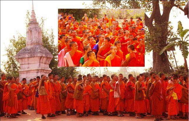 | Nombre de bonzes à Luang Prabang, en contraste avec des vats de province - Le phénomène des jeunes moines pour quelques années d’étude - MEDITATION ET PRIERES - La méditation des novices et leur apprentissage religieux - la vie de bonze, une expérience bouddhique exigeante , chemin initiatique - préparation des offices - ENSEIGNEMENT DES NOVICES - Ecoles dédiées aux bonzes dans plusieurs vats - autres occupations – LES REPAS – repas pris de façon rituelle – TRAVAUX EXTERIEURS - travaux de restauration et d’entretien, sous-traitance accrue des travaux de construction - Exemple d’atelier de sculpture - LE KUTI, HABITATION DES MOINES - souvent un exemple de référence des maisons traditionnelles - L’APPRENTISSAGE DE LA SAGESSE - les bonzes ouverts au progrès, à internet par exemple - vie communautaire exigeante en contraste avec l’ambiance urbaine bruyante et festive - Cas particulier des nonnes - VOYAGES DES BONZES - évocation illustrée d’une communauté prenant le bateau - Conclusion sans réponses des religions aux mystères de la vie, vers une voie de l’éveil inscrite dans le bouddhisme. | |