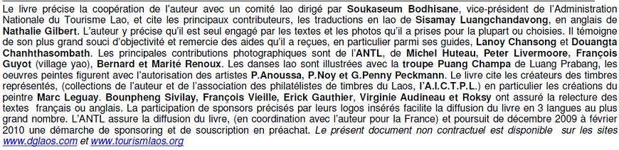 | Ou petit guide de voyage, environ 50 villes et sites du nord au sud, les principaux sites touristiques, paysages typiques et diverses curiosités. Le livre comporte la carte administrative du Laos, des cartes nord et sud, et des «4000 îles», région sud de Si Phan Done, et plusieurs annexes (bibliographie, listes d’ONG, index complet par langue sur feuille mobile…). | |