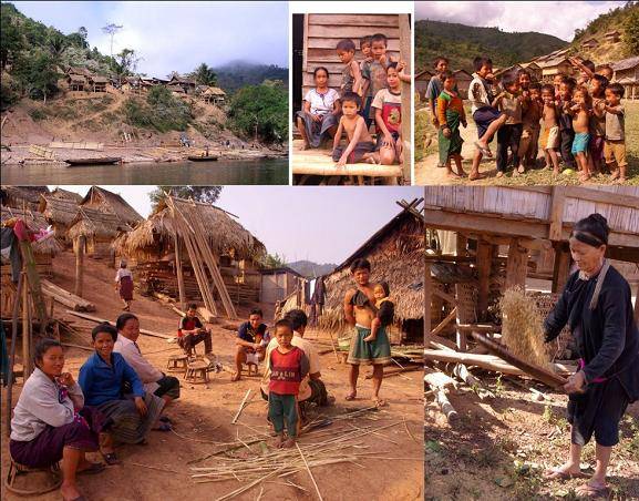 | Premiers villages en hauteur des côteaux , au bord des rivières et des routes – Accueil des groupes d’enfants – Aperçu de villages ethniques (renvoi au chapitre 16) – Scènes de travail, pilage et vannage du riz, différents procédés de pilage, meulage de la noix de coco – Repas en extérieur familiaux ou festifs – Scènes de vannerie – Autour des points d’eau,…– Evolution vers la sédentarisation et le regroupement pour faciliter l’accès routier et autres facteurs de progrès – Evocation de l’adaptation à la nature environnante, des rites animistes, de l’équilibre entre la vie villageoise et la recherche d’emplois en ville. | |